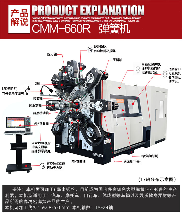 新款 CMM-660R 无凸轮多轴多功能电脑弹簧机