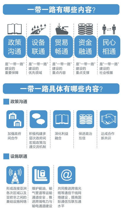 “一带一路”是中国与丝路沿途国家分享优质产能,它是共商项目投资、共建基础设施、共享合作成果,内容包括道路联通、贸易畅通、货币流通、政策沟通、人心相通等“五通”,比马歇尔计划内涵丰富得多,肩负着三大使命: